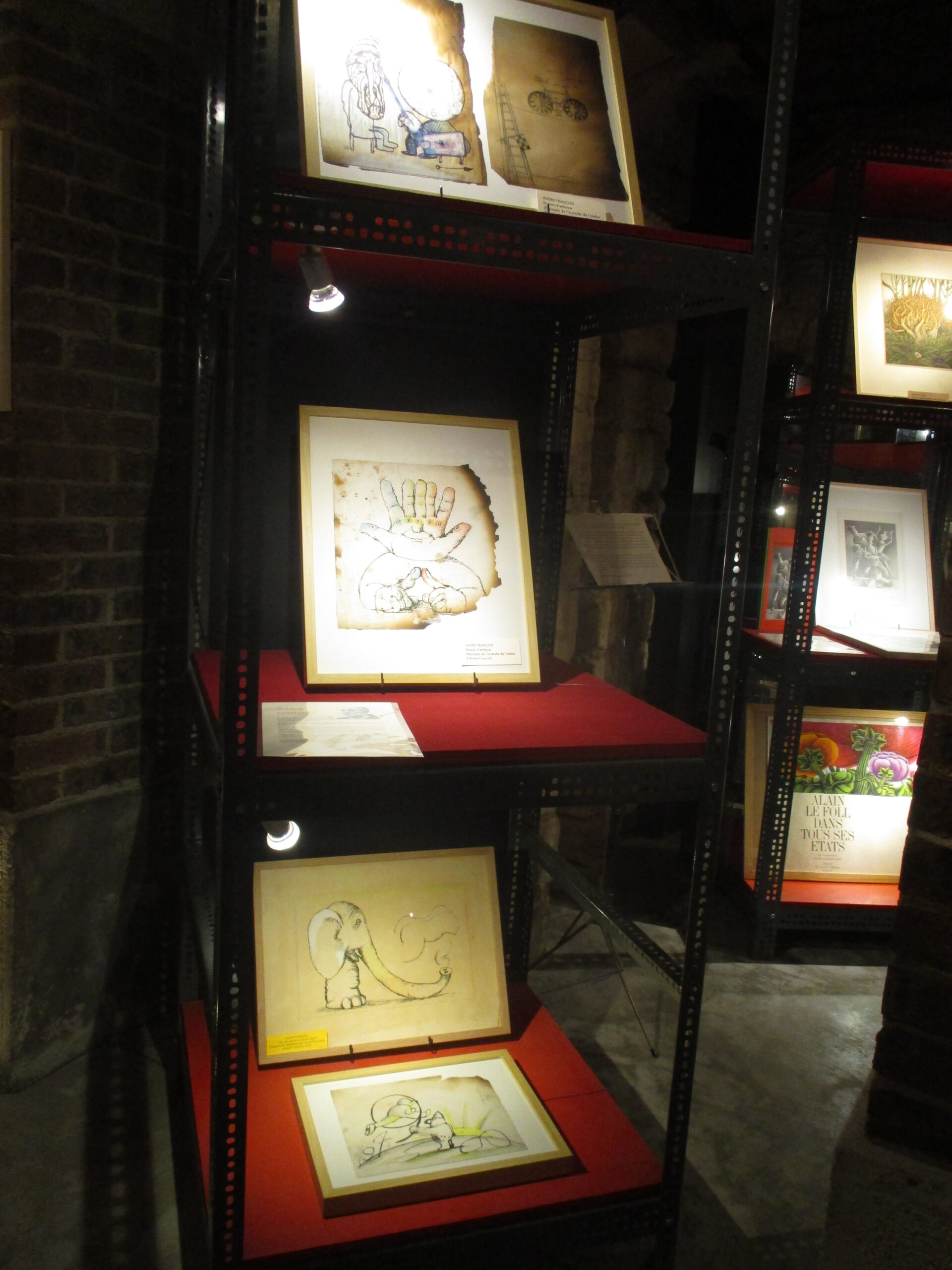 L’exposition, installée dans la cave voûtée des Libraires Associés, combinait cimaises, vitrines et albums originaux pour offrir une vue complète sur le travail des artistes. Les visiteurs pouvaient découvrir les œuvres dans leur format original, accompagnées de notices explicatives et, lorsque possible, des albums dans lesquels elles apparaissent. Cette présentation permettait d’observer la diversité et la richesse de la création contemporaine en illustration et littérature jeunesse, et de comparer les techniques et styles des différents artistes exposés.