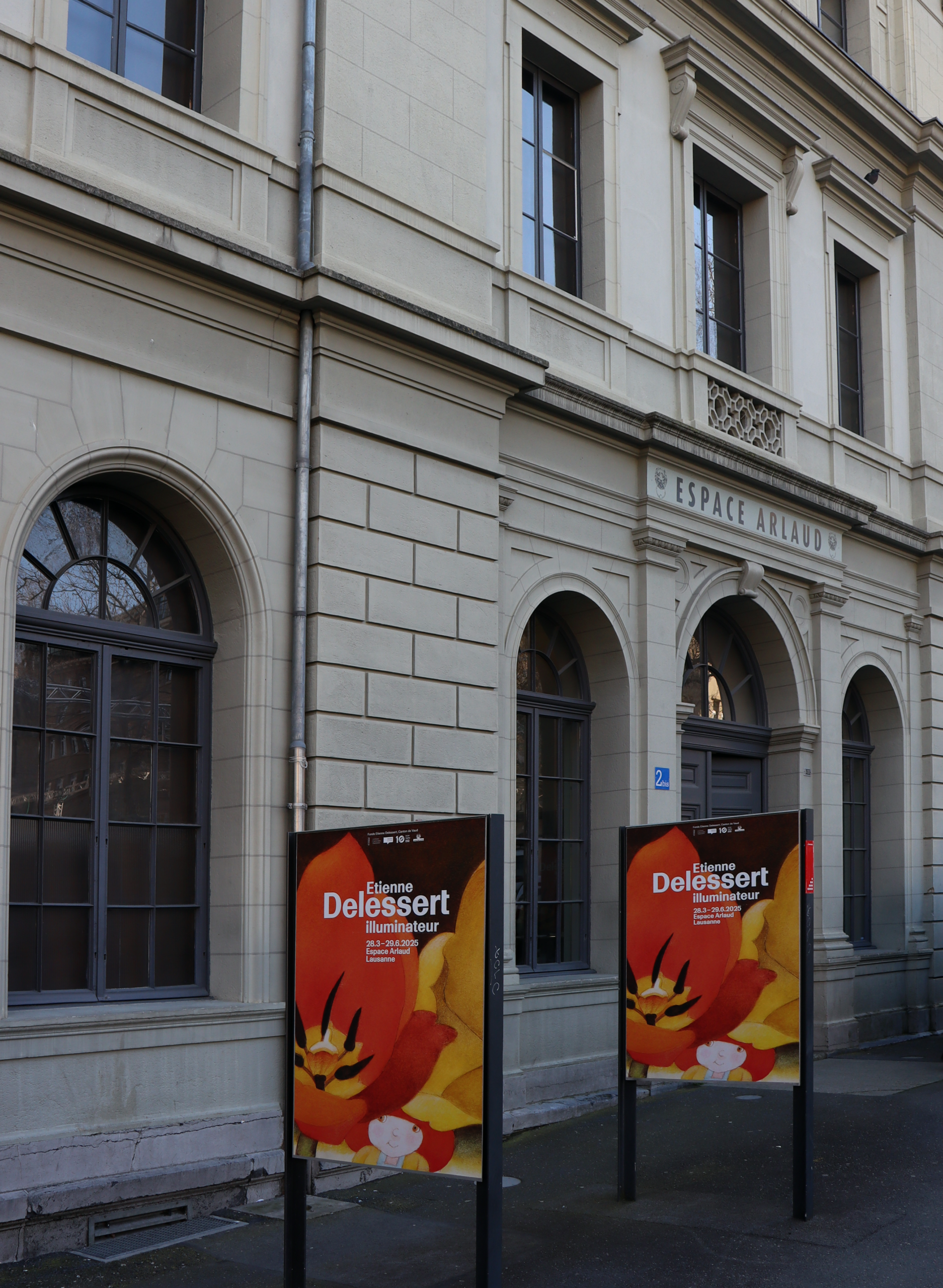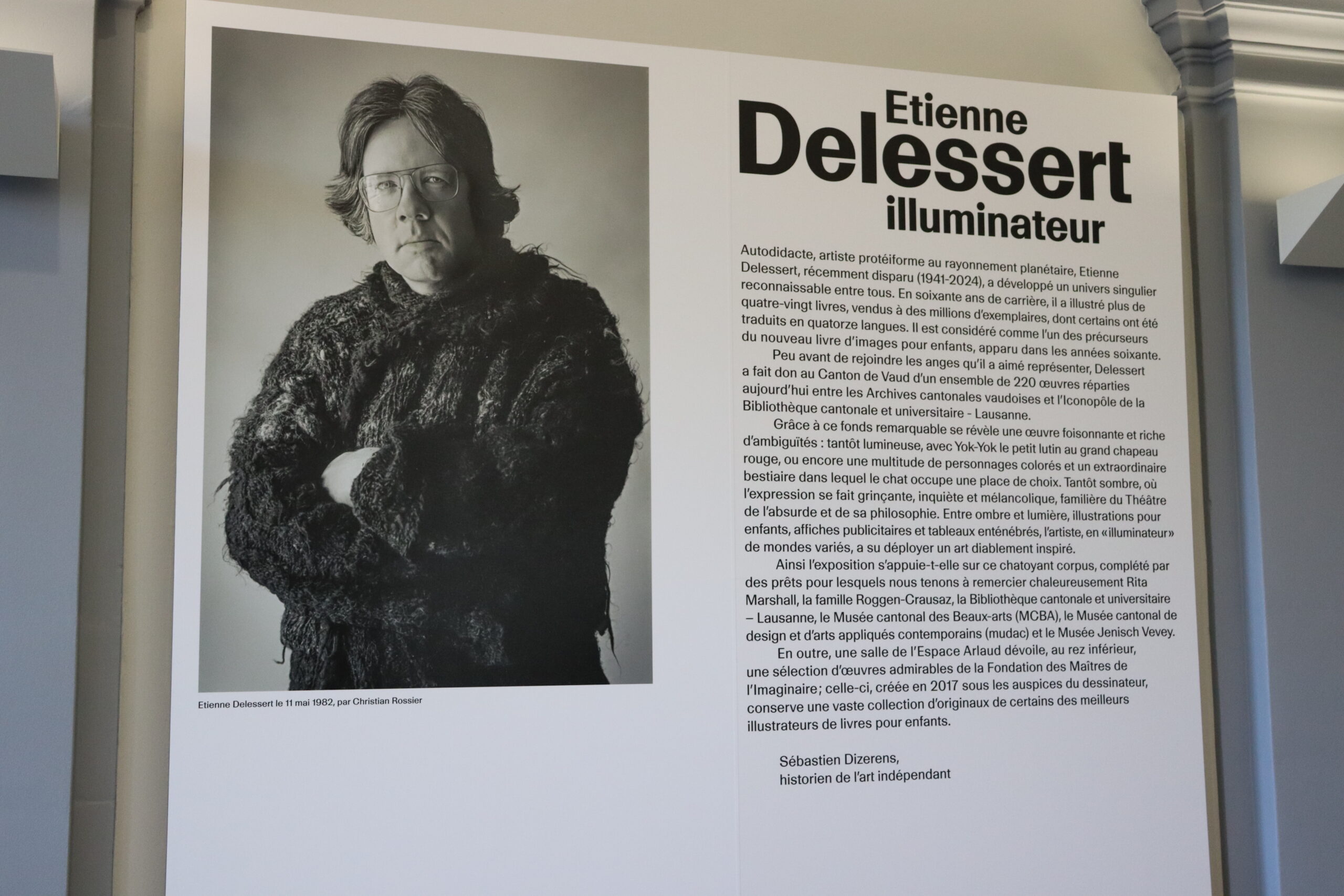 Peu avant de rejoindre les anges qu’il aimait représenter, Delessert a fait don au Canton de Vaud d’un ensemble de 220 œuvres originales réparties aujourd’hui entre les Archives cantonales vaudoises et l’Iconopôle de la Bibliothèque cantonale et universitaire – Lausanne. L’exposition présentée à Arlaud, composée d’une sélection d’œuvres effectuée parmi les deux fonds cantonaux et de prêts tant nationaux qu’internationaux, met en lumière le parcours inspirant d’une personnalité vaudoise de premier plan et la dualité de son univers créatif. Des visites guidées et des documents de médiation culturelle accompagnent l’exposition.