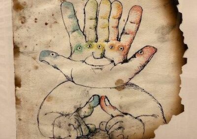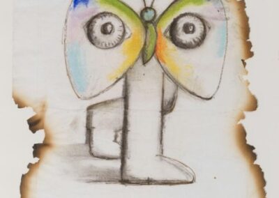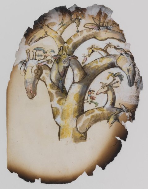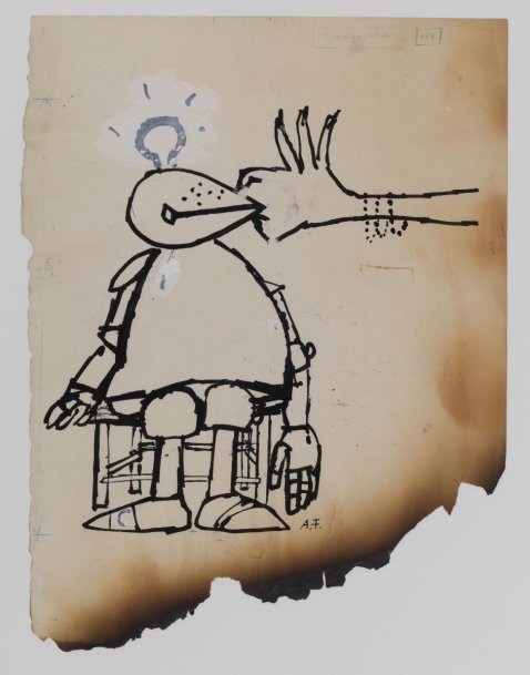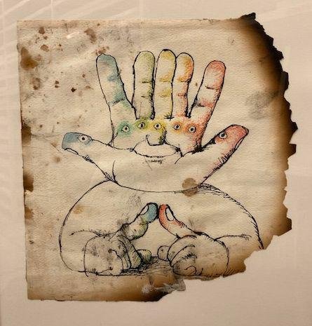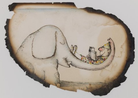 La Fondation des Maîtres de l’Imaginaire conserve une série de 11 illustrations dont le support papier est abîmé par les flammes, les œuvres devenant alors témoins de cette « épreuve du feu ».