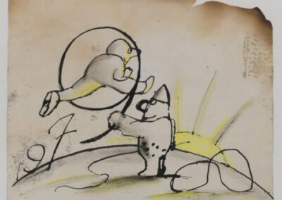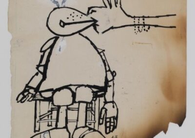 André François, né André Farkas le 9 novembre 1915 à Temesvár en Hongrie, aujourd’hui Timişoara en Roumanie, est un illustrateur, affichiste et graphiste hongrois naturalisé français en 1939. Il étudie à l’Académie des beaux‑arts de Budapest avant de s’installer à Paris en 1934 et de rejoindre l’atelier d’Adolphe Cassandre. Il commence sa carrière comme affichiste et illustrateur, puis devient dessinateur de presse après la guerre, publiant dans des magazines tels que The New Yorker et Punch, ainsi que dans la presse française, tout en illustrant des livres pour enfants. Son style mêle humour visuel, absurdité, satire et poésie graphique, utilisant diverses techniques telles que la lithographie, le dessin et l’affiche.
